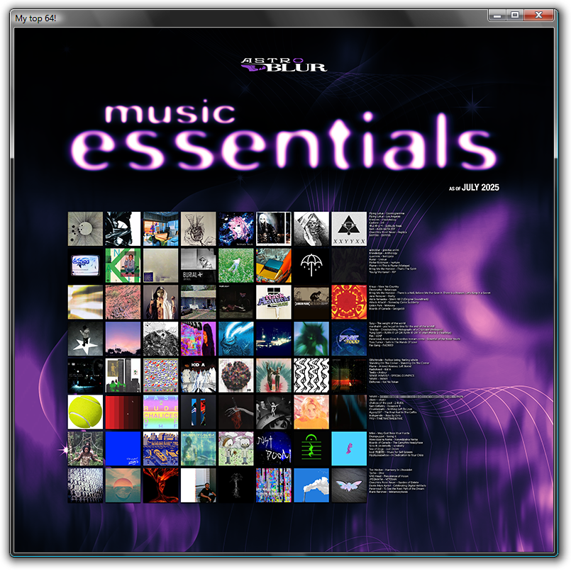 Over the course of a long-ass time I've spent listening to music, I've definitely found out I'm into quite a lot of shit. Mostly, just a lot of electronic shit (either dance-y or...whatever the fuck, honestly), guitar shit (mostly metal, but also rock stuff), or hip-hop shit (genuinely, all kinds of stuff in this department.)Recommending me genuinely whatever, is encouraged. Doesn't have to align with anything on the chart, I can likely find something to appreciate from it regardless of even if I fuck with it or not. Like, seriously. I'm open minded.